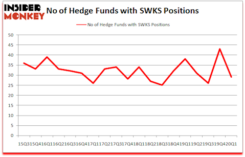 Skyworks Solutions Inc (NASDAQ:SWKS) was in 29 hedge funds’ portfolios at the end of the first quarter of 2020. SWKS investors should pay attention to a decrease in enthusiasm from smart money of late. There were 43 hedge funds in our database with SWKS holdings at the end of the previous quarter. Our calculations also showed that SWKS isn’t among the 30 most popular stocks among hedge funds (click for Q1 rankings and see the video for a quick look at the top 5 stocks).