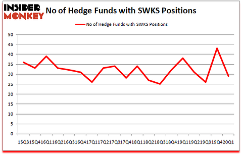 Skyworks Solutions Inc (NASDAQ:SWKS) was in 29 hedge funds’ portfolios at the end of the first quarter of 2020. SWKS investors should pay attention to a decrease in enthusiasm from smart money of late. There were 43 hedge funds in our database with SWKS holdings at the end of the previous quarter. Our calculations also showed that SWKS isn’t among the 30 most popular stocks among hedge funds (click for Q1 rankings and see the video for a quick look at the top 5 stocks).