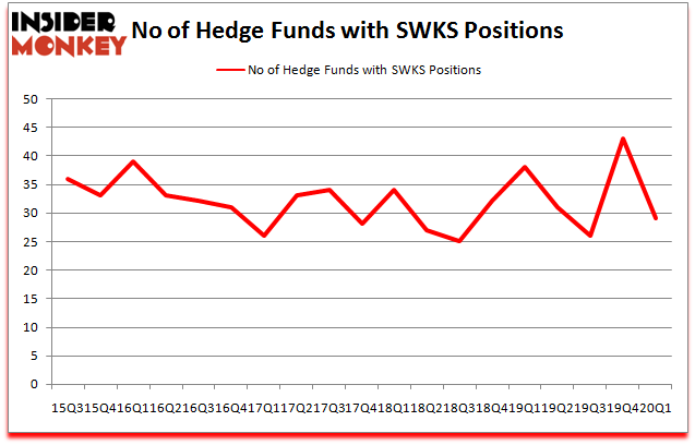 At the end of the first quarter, a total of 29 of the hedge funds tracked by Insider Monkey held long positions in this stock, a change of -33% from the fourth quarter of 2019. On the other hand, there were a total of 38 hedge funds with a bullish position in SWKS a year ago. With hedge funds’ positions undergoing their usual ebb and flow, there exists an “upper tier” of key hedge fund managers who were upping their stakes considerably (or already accumulated large positions).