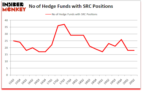 At second quarter’s end, a total of 18 of the hedge funds tracked by Insider Monkey held long positions in this stock, a change of 0% from the previous quarter. By comparison, 23 hedge funds held shares or bullish call options in SRC a year ago. With the smart money’s positions undergoing their usual ebb and flow, there exists a few key hedge fund managers who were boosting their holdings significantly (or already accumulated large positions).