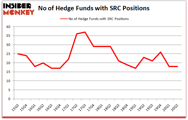 At second quarter’s end, a total of 18 of the hedge funds tracked by Insider Monkey held long positions in this stock, a change of 0% from the previous quarter. By comparison, 23 hedge funds held shares or bullish call options in SRC a year ago. With the smart money’s positions undergoing their usual ebb and flow, there exists a few key hedge fund managers who were boosting their holdings significantly (or already accumulated large positions).