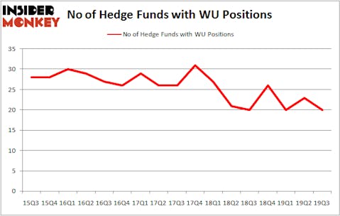 As we already know from media reports and hedge fund investor letters, hedge funds delivered their best returns in a decade. Most investors who decided to stick with hedge funds after a rough 2018 recouped their losses by the end of the third quarter. We get to see hedge funds’ thoughts towards the market and individual stocks by aggregating their quarterly portfolio movements and reading their investor letters. In this article, we will particularly take a look at what hedge funds think about The Western Union Company (NYSE:WU).