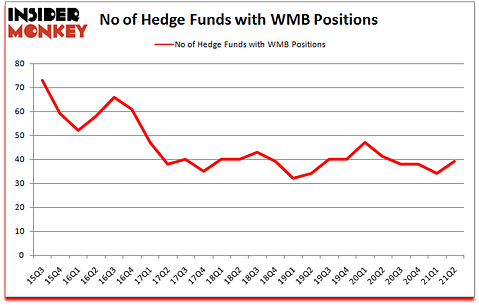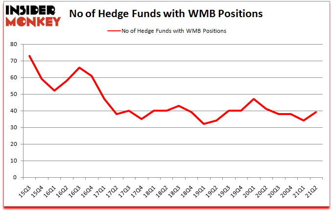 The Williams Companies, Inc. (NYSE:WMB) shareholders have witnessed an increase in support from the world’s most elite money managers lately. The Williams Companies, Inc. (NYSE:WMB) was in 39 hedge funds’ portfolios at the end of the second quarter of 2021. The all time high for this statistic is 73. There were 34 hedge funds in our database with WMB positions at the end of the first quarter. Our calculations also showed that WMB isn’t among the 30 most popular stocks among hedge funds (click for Q2 rankings).