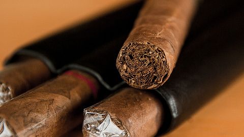 A worker athlete with a rolling paper held in hand, smoking from the finished cigar.