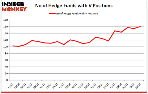 Is Visa Inc (NYSE:V) going to take off soon? Investors who are in the know were taking a bullish view. The number of bullish hedge fund positions increased by 6 in recent months. Visa Inc (NYSE:V) was in 160 hedge funds’ portfolios at the end of the third quarter of 2020. The all time high for this statistics prior to this quarter was 157. This means the bullish number of hedge fund positions in this stock currently sits at its all time high. Our calculations also showed that V ranks 6th among the 30 most popular stocks among hedge funds (click for Q3 rankings and see the video for a quick look at the top 5 stocks).