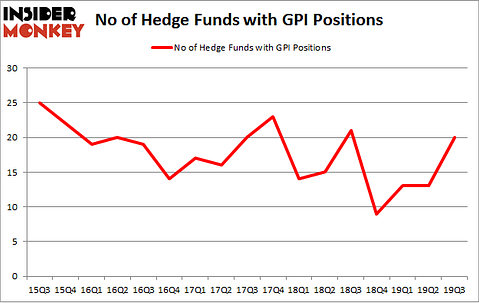 Heading into the fourth quarter of 2019, a total of 20 of the hedge funds tracked by Insider Monkey were bullish on this stock, a change of 54% from the previous quarter. Below, you can check out the change in hedge fund sentiment towards GPI over the last 17 quarters. So, let’s find out which hedge funds were among the top holders of the stock and which hedge funds were making big moves.
