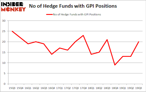 Heading into the fourth quarter of 2019, a total of 20 of the hedge funds tracked by Insider Monkey were bullish on this stock, a change of 54% from the previous quarter. Below, you can check out the change in hedge fund sentiment towards GPI over the last 17 quarters. So, let’s find out which hedge funds were among the top holders of the stock and which hedge funds were making big moves.