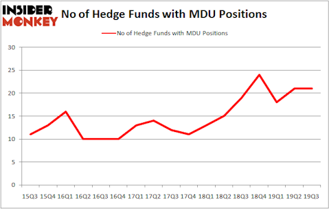 At Q3’s end, a total of 21 of the hedge funds tracked by Insider Monkey were bullish on this stock, a change of 0% from one quarter earlier. Below, you can check out the change in hedge fund sentiment towards MDU over the last 17 quarters. So, let’s see which hedge funds were among the top holders of the stock and which hedge funds were making big moves.