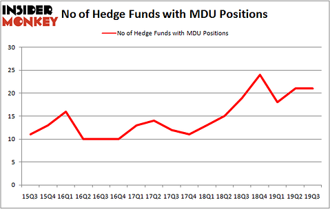 At Q3’s end, a total of 21 of the hedge funds tracked by Insider Monkey were bullish on this stock, a change of 0% from one quarter earlier. Below, you can check out the change in hedge fund sentiment towards MDU over the last 17 quarters. So, let’s see which hedge funds were among the top holders of the stock and which hedge funds were making big moves.
