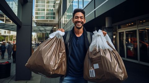 A customer in a warehouse aisles, browsing the wide range of branded and private-label products.