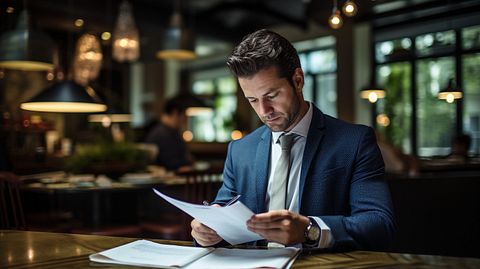 A business owner examining their business owners policy for coverage and liability protection.