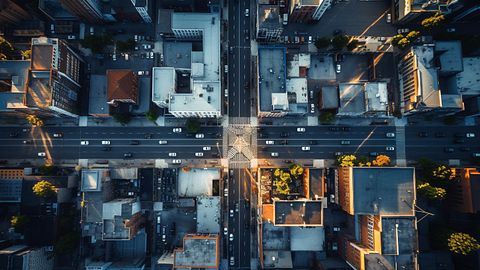 An aerial view of a city showing the presence of public safety solutions such as Shot Spotter All in One.