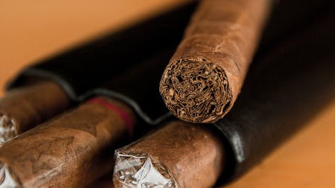 A worker athlete with a rolling paper held in hand, smoking from the finished cigar.