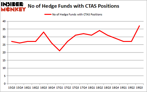 Cintas Corporation (NASDAQ:CTAS) has seen an increase in hedge fund sentiment of late. CTAS was in 37 hedge funds’ portfolios at the end of September. There were 27 hedge funds in our database with CTAS holdings at the end of the previous quarter. Our calculations also showed that CTAS isn’t among the 30 most popular stocks among hedge funds (click for Q3 rankings and see the video at the end of this article for Q2 rankings).
