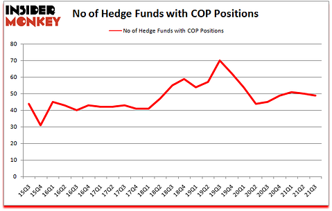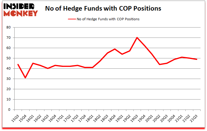 ConocoPhillips (NYSE:COP) was in 49 hedge funds’ portfolios at the end of the third quarter of 2021. The all time high for this statistic is 70. COP shareholders have witnessed a decrease in hedge fund interest lately. There were 50 hedge funds in our database with COP positions at the end of the second quarter. Our calculations also showed that COP isn’t among the 30 most popular stocks among hedge funds (click for Q3 rankings).
