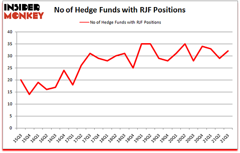 Raymond James Financial, Inc. (NYSE:RJF) was in 32 hedge funds’ portfolios at the end of the third quarter of 2021. The all time high for this statistic is 35. RJF investors should pay attention to an increase in enthusiasm from smart money recently. There were 29 hedge funds in our database with RJF holdings at the end of June. Our calculations also showed that RJF isn’t among the 30 most popular stocks among hedge funds (click for Q3 rankings).