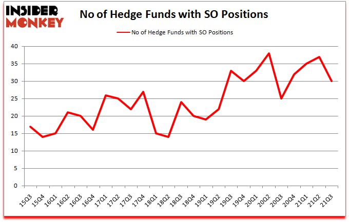 Heading into the fourth quarter of 2021, a total of 30 of the hedge funds tracked by Insider Monkey held long positions in this stock, a change of -19% from the previous quarter. The graph below displays the number of hedge funds with bullish position in SO over the last 25 quarters. With hedgies’ positions undergoing their usual ebb and flow, there exists a select group of key hedge fund managers who were increasing their stakes considerably (or already accumulated large positions).
