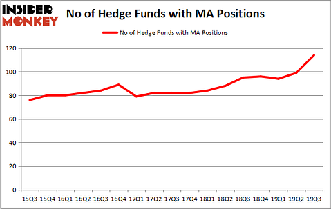 Mastercard Incorporated (NYSE:MA) shareholders have witnessed an increase in hedge fund sentiment of late. MA was in 114 hedge funds’ portfolios at the end of September. There were 99 hedge funds in our database with MA positions at the end of the previous quarter. Our calculations also showed that MA currently ranks #8 among the 30 most popular stocks among hedge funds (click for Q3 rankings and see the video at the end of this article for Q2 rankings).