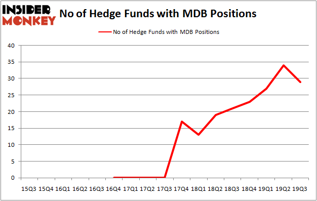 Is MongoDB, Inc. (NASDAQ:MDB) the right investment to pursue these days? Prominent investors are in a bearish mood. The number of long hedge fund positions dropped by 5 recently. Our calculations also showed that MDB isn’t among the 30 most popular stocks among hedge funds (click for Q3 rankings and see the video at the end of this article for Q2 rankings). MDB was in 29 hedge funds’ portfolios at the end of September. There were 34 hedge funds in our database with MDB holdings at the end of the previous quarter.