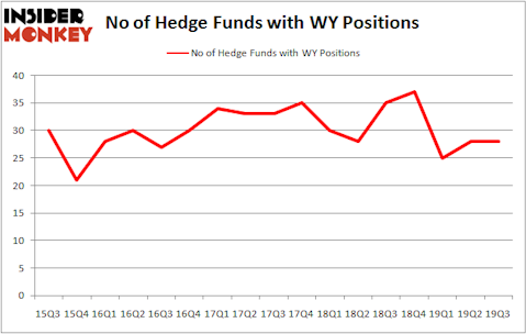 Many investors, including Paul Tudor Jones or Stan Druckenmiller, have been saying before last year’s Q4 market crash that the stock market is overvalued due to a low interest rate environment that leads to companies swapping their equity for debt and focusing mostly on short-term performance such as beating the quarterly earnings estimates. In the first half of 2019, most investors recovered all of their Q4 losses as sentiment shifted and optimism dominated the US China trade negotiations. Nevertheless, many of the stocks that delivered strong returns in the first half still sport strong fundamentals and their gains were more related to the general market sentiment rather than their individual performance and hedge funds kept their bullish stance. In this article we will find out how hedge fund sentiment to Weyerhaeuser Company (NYSE:WY) changed recently.