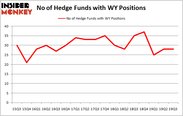 At Q3’s end, a total of 28 of the hedge funds tracked by Insider Monkey held long positions in this stock, a change of 0% from one quarter earlier. The graph below displays the number of hedge funds with bullish position in WY over the last 17 quarters. So, let’s see which hedge funds were among the top holders of the stock and which hedge funds were making big moves.