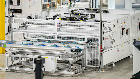 A production line equipment assembling solar modules. Photo from T1 Energy