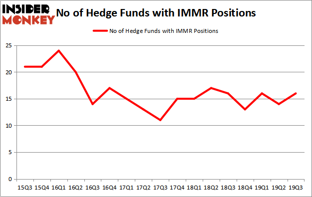 Is Immersion Corporation (NASDAQ:IMMR) undervalued? Hedge funds are getting more bullish. The number of long hedge fund bets rose by 2 in recent months. Our calculations also showed that IMMR isn’t among the 30 most popular stocks among hedge funds (click for Q3 rankings and see the video below for Q2 rankings). IMMR was in 16 hedge funds’ portfolios at the end of the third quarter of 2019. There were 14 hedge funds in our database with IMMR holdings at the end of the previous quarter.