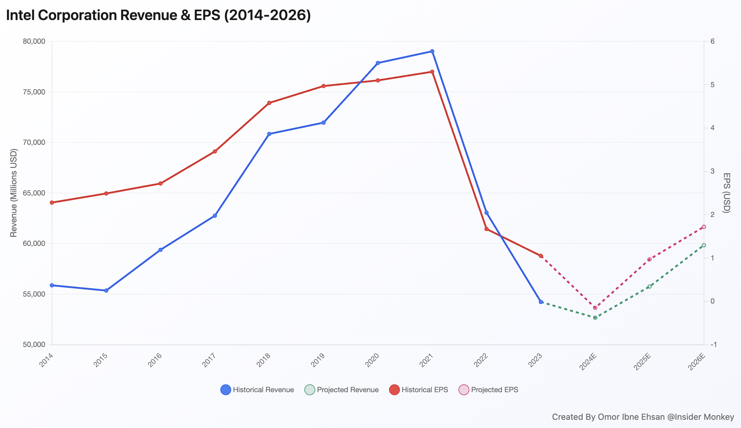 AMD was already trouble enough for Intel, and the stock traded around $27 to $30 for a few months before ChatGPT’s release gave investors enough optimism to push it higher–at least for a while before they realized the competition Intel was facing in the AI field. The rising tide mostly lifted Nvidia–including some AI pick-and-shovel AI stocks–and AMD to some extent. It’d be appropriate to say that Intel basically drowned in the tide.