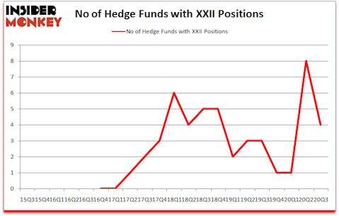At third quarter’s end, a total of 4 of the hedge funds tracked by Insider Monkey held long positions in this stock, a change of -50% from the previous quarter. On the other hand, there were a total of 3 hedge funds with a bullish position in XXII a year ago. With the smart money’s positions undergoing their usual ebb and flow, there exists a few key hedge fund managers who were upping their holdings meaningfully (or already accumulated large positions).