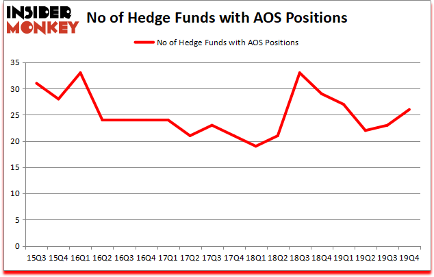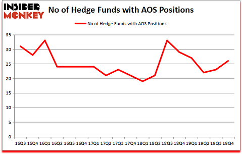 Is A. O. Smith Corporation (NYSE:AOS) going to take off soon? The smart money is getting more optimistic. The number of bullish hedge fund positions rose by 3 recently. Our calculations also showed that AOS isn’t among the 30 most popular stocks among hedge funds (click for Q4 rankings and see the video at the end of this article for Q3 rankings). AOS was in 26 hedge funds’ portfolios at the end of the fourth quarter of 2019. There were 23 hedge funds in our database with AOS positions at the end of the previous quarter.