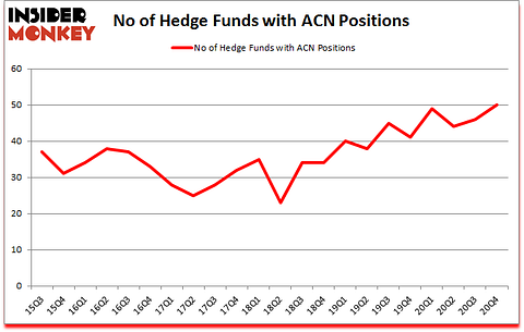 Is ACN stock a buy or sell? Accenture Plc (NYSE:ACN) was in 50 hedge funds’ portfolios at the end of December. The all time high for this statistic is 49. This means the bullish number of hedge fund positions in this stock currently sits at its all time high. ACN has seen an increase in hedge fund sentiment lately. There were 46 hedge funds in our database with ACN positions at the end of the third quarter. Our calculations also showed that ACN isn’t among the 30 most popular stocks among hedge funds (click for Q4 rankings).