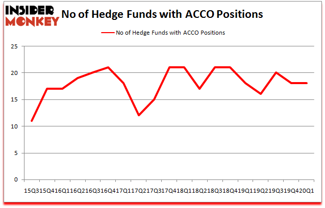 Heading into the second quarter of 2020, a total of 18 of the hedge funds tracked by Insider Monkey were long this stock, a change of 0% from the previous quarter. On the other hand, there were a total of 18 hedge funds with a bullish position in ACCO a year ago. So, let’s review which hedge funds were among the top holders of the stock and which hedge funds were making big moves.
