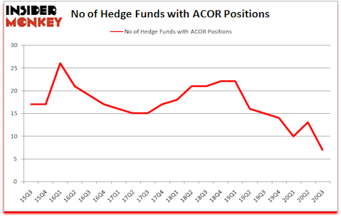 At the end of September, a total of 7 of the hedge funds tracked by Insider Monkey were long this stock, a change of -46% from one quarter earlier. The graph below displays the number of hedge funds with bullish position in ACOR over the last 21 quarters. So, let’s review which hedge funds were among the top holders of the stock and which hedge funds were making big moves.