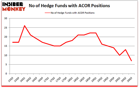 At the end of September, a total of 7 of the hedge funds tracked by Insider Monkey were long this stock, a change of -46% from one quarter earlier. The graph below displays the number of hedge funds with bullish position in ACOR over the last 21 quarters. So, let’s review which hedge funds were among the top holders of the stock and which hedge funds were making big moves.