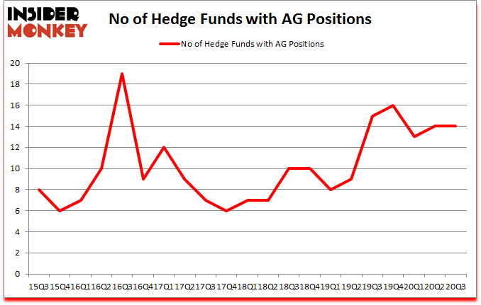 At third quarter’s end, a total of 14 of the hedge funds tracked by Insider Monkey were bullish on this stock, a change of 0% from the previous quarter. Below, you can check out the change in hedge fund sentiment towards AG over the last 21 quarters. With hedgies’ capital changing hands, there exists a select group of key hedge fund managers who were boosting their stakes substantially (or already accumulated large positions).