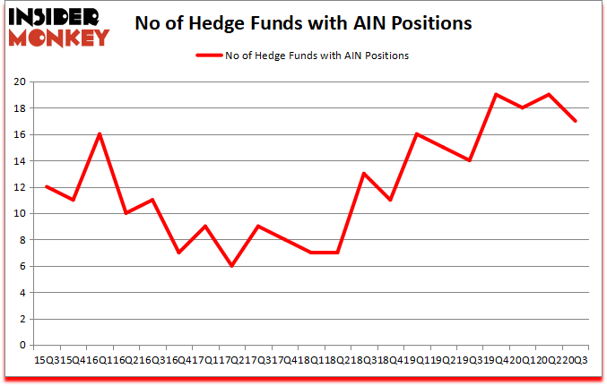 At the end of September, a total of 17 of the hedge funds tracked by Insider Monkey were bullish on this stock, a change of -11% from one quarter earlier. Below, you can check out the change in hedge fund sentiment towards AIN over the last 21 quarters. With the smart money’s capital changing hands, there exists a select group of notable hedge fund managers who were adding to their holdings significantly (or already accumulated large positions).