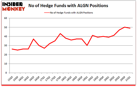 Align Technology, Inc. (NASDAQ:ALGN) investors should be aware of a decrease in hedge fund sentiment lately. Align Technology, Inc. (NASDAQ:ALGN) was in 49 hedge funds’ portfolios at the end of the first quarter of 2021. The all time high for this statistic is 50. There were 50 hedge funds in our database with ALGN positions at the end of the fourth quarter. Our calculations also showed that ALGN isn’t among the 30 most popular stocks among hedge funds (click for Q1 rankings).