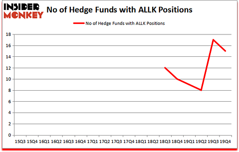 Heading into the first quarter of 2020, a total of 15 of the hedge funds tracked by Insider Monkey were bullish on this stock, a change of -12% from the third quarter of 2019. Below, you can check out the change in hedge fund sentiment towards ALLK over the last 18 quarters. With the smart money’s positions undergoing their usual ebb and flow, there exists a few key hedge fund managers who were boosting their holdings meaningfully (or already accumulated large positions).