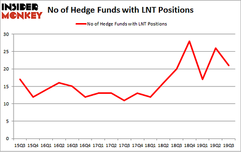 At Q3’s end, a total of 21 of the hedge funds tracked by Insider Monkey were long this stock, a change of -19% from the second quarter of 2019. On the other hand, there were a total of 20 hedge funds with a bullish position in LNT a year ago. With hedgies’ capital changing hands, there exists a select group of key hedge fund managers who were upping their holdings considerably (or already accumulated large positions).