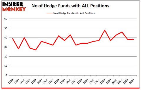 Heading into the first quarter of 2021, a total of 38 of the hedge funds tracked by Insider Monkey were bullish on this stock, a change of 0% from one quarter earlier. Below, you can check out the change in hedge fund sentiment towards ALL over the last 22 quarters. With the smart money’s capital changing hands, there exists an “upper tier” of noteworthy hedge fund managers who were increasing their stakes meaningfully (or already accumulated large positions).