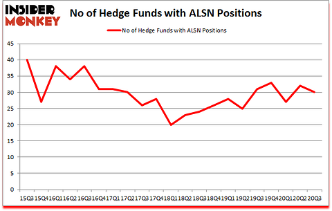 Is ALSN a good stock to buy? Allison Transmission Holdings Inc (NYSE:ALSN) was in 30 hedge funds’ portfolios at the end of the third quarter of 2020. The all time high for this statistic is 40. ALSN has seen a decrease in activity from the world’s largest hedge funds lately. There were 32 hedge funds in our database with ALSN holdings at the end of June. Our calculations also showed that ALSN isn’t among the 30 most popular stocks among hedge funds (click for Q3 rankings and see the video for a quick look at the top 5 stocks).