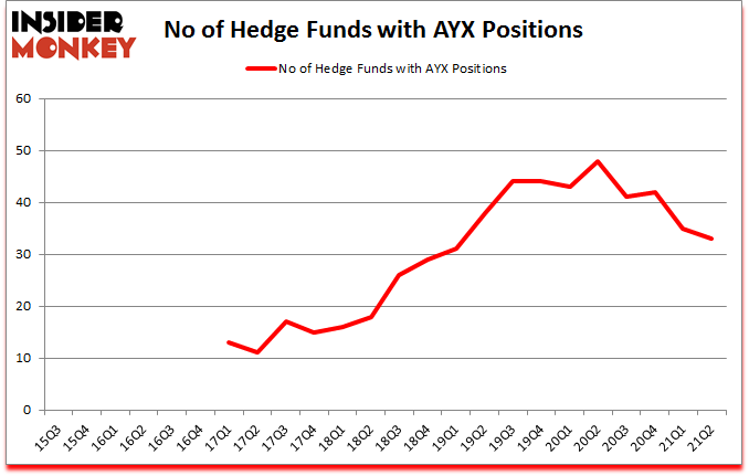 Heading into the third quarter of 2021, a total of 33 of the hedge funds tracked by Insider Monkey held long positions in this stock, a change of -6% from the previous quarter. The graph below displays the number of hedge funds with bullish position in AYX over the last 24 quarters. So, let’s see which hedge funds were among the top holders of the stock and which hedge funds were making big moves.