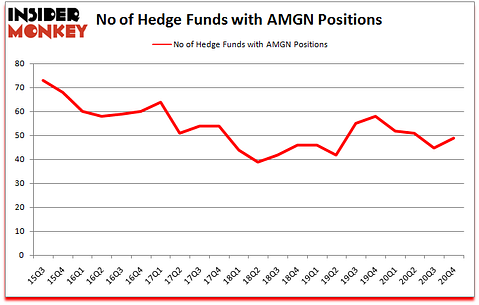 Is AMGN stock a buy or sell? Amgen, Inc. (NASDAQ:AMGN) was in 49 hedge funds’ portfolios at the end of the fourth quarter of 2020. The all time high for this statistic is 73. AMGN has seen an increase in hedge fund sentiment recently. There were 45 hedge funds in our database with AMGN holdings at the end of September. Our calculations also showed that AMGN isn’t among the 30 most popular stocks among hedge funds (click for Q4 rankings).