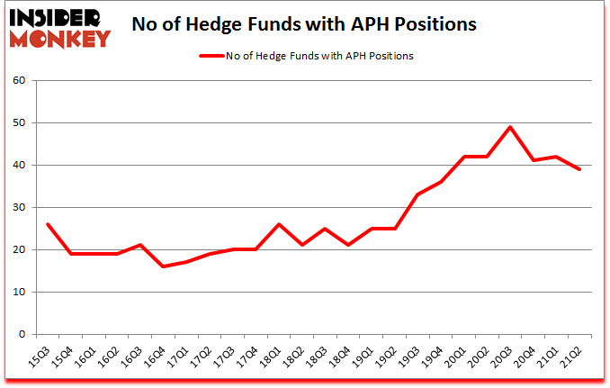 At second quarter’s end, a total of 39 of the hedge funds tracked by Insider Monkey were bullish on this stock, a change of -7% from one quarter earlier. The graph below displays the number of hedge funds with bullish position in APH over the last 24 quarters. So, let’s review which hedge funds were among the top holders of the stock and which hedge funds were making big moves.