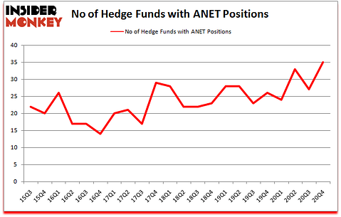 Is ANET stock a buy? Arista Networks Inc (NYSE:ANET) was in 35 hedge funds’ portfolios at the end of December. The all time high for this statistic is 33. This means the bullish number of hedge fund positions in this stock currently sits at its all time high. ANET has seen an increase in enthusiasm from smart money recently. There were 27 hedge funds in our database with ANET positions at the end of the third quarter. Our calculations also showed that ANET isn’t among the 30 most popular stocks among hedge funds (click for Q4 rankings).