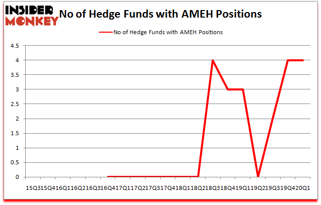 At Q1’s end, a total of 4 of the hedge funds tracked by Insider Monkey held long positions in this stock, a change of 0% from the previous quarter. By comparison, 3 hedge funds held shares or bullish call options in AMEH a year ago. So, let’s see which hedge funds were among the top holders of the stock and which hedge funds were making big moves.