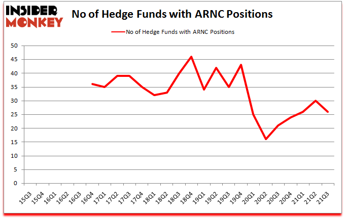 Heading into the fourth quarter of 2021, a total of 26 of the hedge funds tracked by Insider Monkey were long this stock, a change of -13% from the second quarter of 2021. The graph below displays the number of hedge funds with bullish position in ARNC over the last 25 quarters. With hedgies’ sentiment swirling, there exists a select group of key hedge fund managers who were increasing their stakes substantially (or already accumulated large positions).