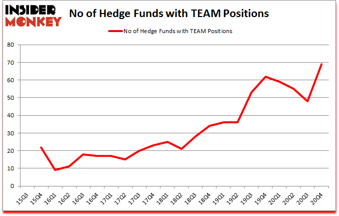 Is TEAM stock a buy or sell? Atlassian Corporation Plc (NASDAQ:TEAM) investors should pay attention to an increase in activity from the world’s largest hedge funds of late. Atlassian Corporation Plc (NASDAQ:TEAM) was in 69 hedge funds’ portfolios at the end of the fourth quarter of 2020. The all time high for this statistic is 62. This means the bullish number of hedge fund positions in this stock currently sits at its all time high. Our calculations also showed that TEAM isn’t among the 30 most popular stocks among hedge funds (click for Q4 rankings).