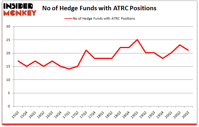 At the end of the third quarter, a total of 21 of the hedge funds tracked by Insider Monkey were long this stock, a change of -9% from one quarter earlier. Below, you can check out the change in hedge fund sentiment towards ATRC over the last 21 quarters. So, let’s find out which hedge funds were among the top holders of the stock and which hedge funds were making big moves.