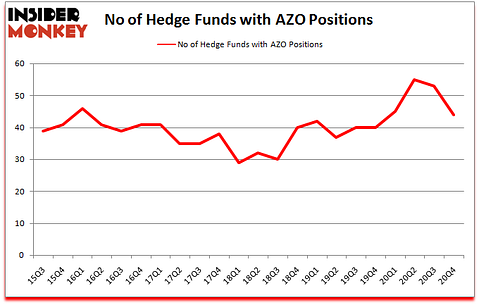 Is AZO stock a buy or sell? AutoZone, Inc. (NYSE:AZO) shareholders have witnessed a decrease in hedge fund sentiment recently. AutoZone, Inc. (NYSE:AZO) was in 44 hedge funds’ portfolios at the end of December. The all time high for this statistic is 55. There were 53 hedge funds in our database with AZO positions at the end of the third quarter. Our calculations also showed that AZO isn’t among the 30 most popular stocks among hedge funds (click for Q4 rankings).